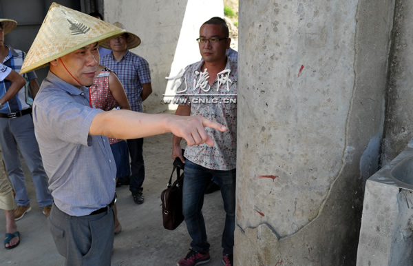 在江口村检查时,对水闸、旱闸、堤坝等水利设施进行全面、仔细的察看,尽快加强对水闸、旱闸、堤塘等水利基础设施的建设与管理,特别是要对有安全隐患的、关键的旱闸、水闸进行全面的检修,确保水闸、旱闸安全运行。