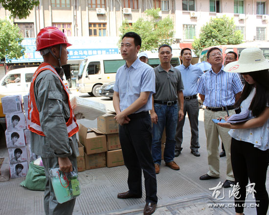 烈日下,电力一线维修人员正在给人民路段的线路进行维修和检查工作。在现场,麻胜聪同他们一一握手,表示亲切慰问,并对坚守一线的电力工作者给予高度赞扬,希望他们要继续发扬连续作战的精神,做好电力电线的维修和整治工作,更好地确保交通道路防汛防台的应对工作。