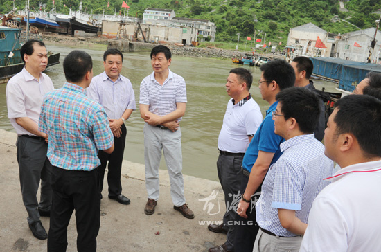 龙港网7月23日讯:今天上午国家防汛抗旱督察专员张旭带队的国家防总防台风工作组在省、市防指的陪同下到苍南县龙港镇指导第10号台风“麦德姆”防御工作。国家防总工作组一行在朱家站水闸、舥艚渔港现场,听取龙港镇防御10号强台风“麦德姆”情况汇报,并传达了国家防总防台指示精神,对我镇防台风工作提出了指导要求,县镇领导黄荣定、蒋献生、王忠秀、黄贤满、吕存阳、章定宇陪同视察。