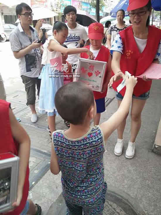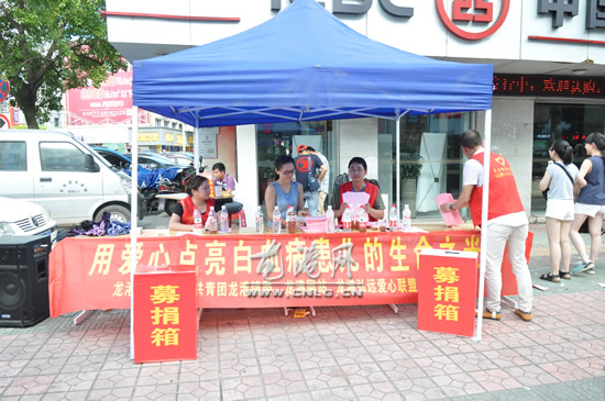龙港网7月28日讯:自本网7月16号报道《花季少女患白血病 骨髓找到40万费用却无着落》这篇新闻后,社会各界爱心人士纷纷打来电话表示要捐款,传递着社会正能量。昨天下午,本网记者赶往由龙港镇妇联、共青团龙港镇委、龙港网站、龙港宏远爱心联盟等组织的爱心募捐现场,活动点涌动着一股爱意,大家你捐一百我捐五十,把爱心款投入募捐箱里,用众人的爱心来帮助患病花季少女度过难关。在现场工作的平阳萧江复合义工志愿者表示,会尽力募捐到更多的爱心款帮助患者度过人生中的一大难关。