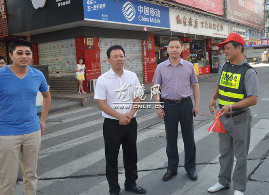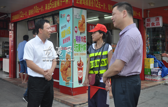 龙港网7月30日讯:今天上午,县委宣传部副部长、县文明办主任郑德菊深入龙港城区各交通路口、路段,调研文明劝导活动,看望坚守在烈日下的劝导员。镇委副书记李孝取、镇委委员朱文胜等领导参加督查。