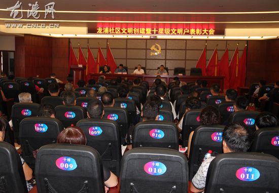 龙港网8月9日讯:为扎实有效地做好全国文明城镇创建工作,促进社区居民整体素质和社区文明程度的进一步提高。昨天下午,龙港镇龙浦社区召开了“社区文明创建暨十星级文明户表彰大会”,社区全体干部、村居两委、各村居党员、非公支部书记、村居文明劝导员、清洁家庭示范户代表共160余人,参加此次表彰大会,镇委委员朱文胜出席大会。