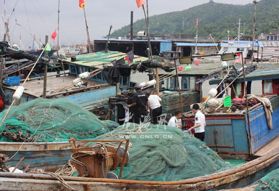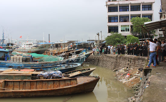 龙港网8月16日讯:为有效压减海洋捕捞强度,修复振兴浙江渔场,昨天,龙港镇开展了浙南鱼仓修复振兴暨“一打三整治”专项执法行动,对舥艚渔港码头的涉渔“三无船舶”及其他各类非法行为进行严厉的打击。王忠秀、黄贤满、吕存阳、朱文胜、章定宇等镇领导现场指挥。