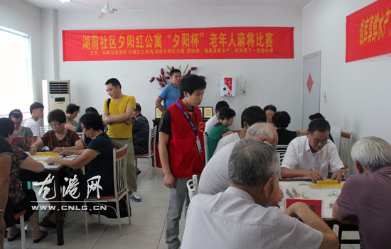 龙港网9月3日讯:为丰富社区老年人的业余生活,倡导健康向上的生活态度,日前,弘毅社会工作服务中心联合乐福社工机构在湖前社区夕阳红老人公寓举办了2014年“夕阳杯”老年人麻将比赛。现场共有20余名社区老年人参与此次比赛。
