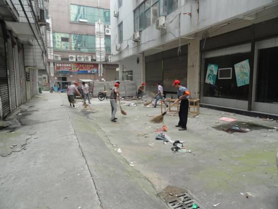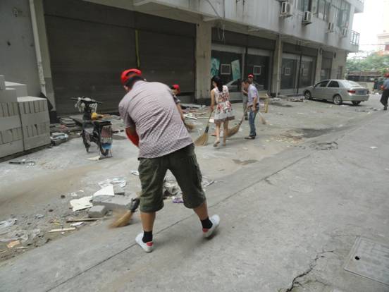 龙港网9月6日简讯:为巩固社区环境综合整治工作成果,逐步改善社区整体环境,推进幸福社区建设, 在中秋佳节来临之际,为了让广大居民干干净净过节,昨天下午,龙跃社区组织社区干部、文明督导员等十余人在华百小区开展卫生大扫除活动,共清运垃圾2吨。