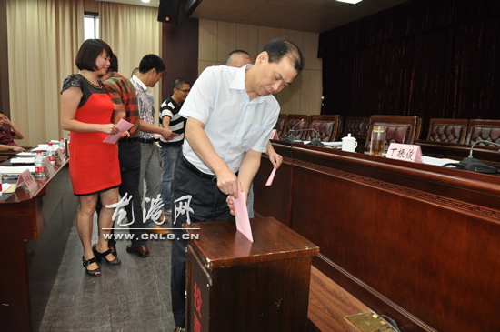 龙港镇召开政府半年度工作情况报告会 图为满意度测评