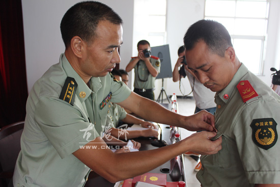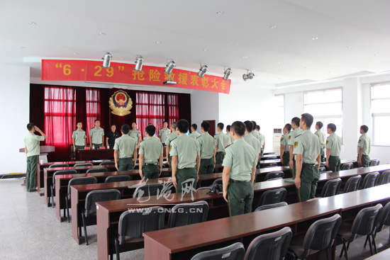 龙港网9月12日讯:龙港消防中队班长李向关在今年苍南“6.29”抢险救援行动中表现突出,被部队记个人三等功。昨天上午,市消防支队党委委员、副支队长胡光德来到龙港消防中队,对李向关做了表彰。镇领导吕存阳、梁亦俊参加表彰大会。