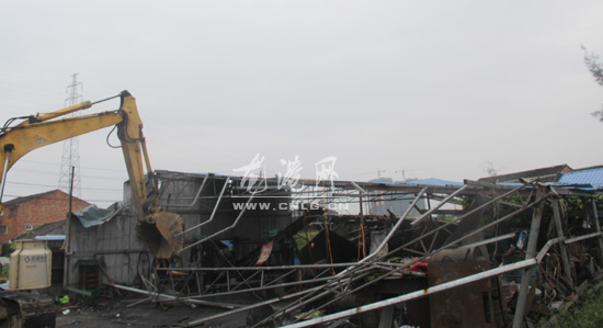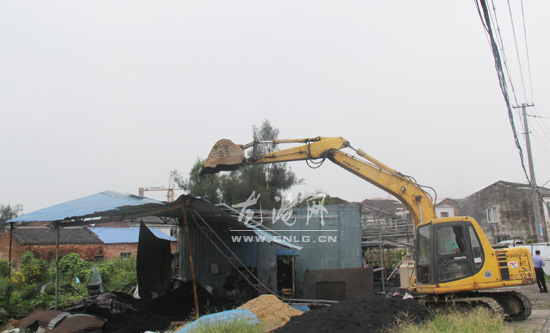 龙港网9月29日讯:日前,镇两违办联合国土、住建、电力等部门,对我镇河北庙一处煤球制造点进行强制拆除。