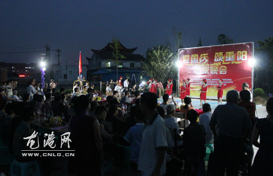龙港网9月30日讯:昨晚,湖前社区夕阳红公寓广场一片欢歌笑语,200多名社区老人与众多社会志愿者共同参演了一堂精彩的“迎国庆、颂重阳”联欢晚会,现场载歌载舞,其乐融融。