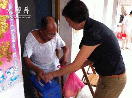 节目表演完后,苍南县红十字会常务副会长林陈丹来到老人们的宿舍,与老人亲切地交谈,了解他们在这里的生活情况,并把慰问品送到每位老人手上,老人的脸上也不断洋溢着笑脸。