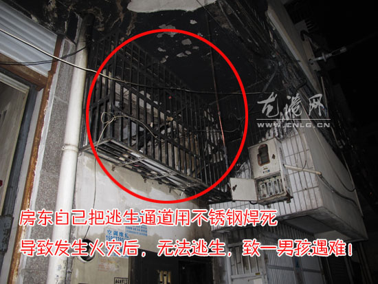 龙港网10月6日快讯:(值班编辑徐登威)今天下午,龙港镇华电商贸城B幢2单元一楼民房发生起火,接到报警后,消防丶公安丶安监丶社区及镇委副书记、政法书记吕存阳,副镇长梁亦俊第一时间赶到现场处置,经现场核实,由于业主自己把阁楼窗户逃生通道用不锈钢焊死,发生火灾后,6岁男孩正好在阁楼上,无法从窗户逃生,导致不幸遇难。