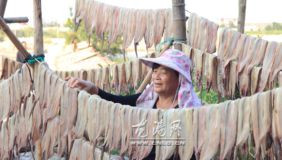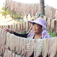据悉,开渔过后大量渔获上岸,市场价格相对较低,渔民们纷纷将鳗鱼、肉鲳鱼、龙头鱼、虾等海产品制成鱼干便于存放。