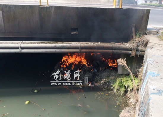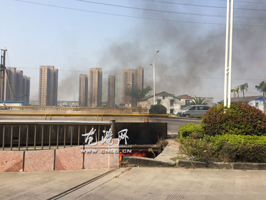 龙港网10月15日讯:今天上午10点左右,龙金大道工业街路口荣御府展示中心对面的桥下垃圾堆无故起火,燃烧时还冒出滚滚黑烟,惹得过往的驾驶员和路人们纷纷停下脚步察看。