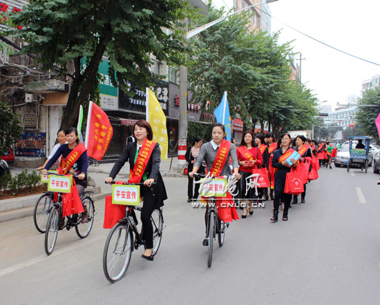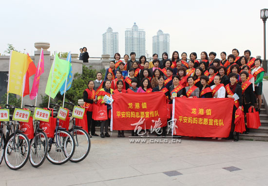 一组是自行车组,自行车上放着收音播放机,“平安妈妈”志愿者可骑着这自行车,穿梭在龙港镇内的街头巷尾,向市民们播放着特制的有普通话、本地话、蛮话等版本的宣传平安建设的内容。另一组是手拿平安建设宣传册,给龙跃路、建新路等街道上的店家和过往群众分发各类宣传资料,现场交流和宣传平安建设知识,让平安宣传活动真正深入人心,切实取得实效。