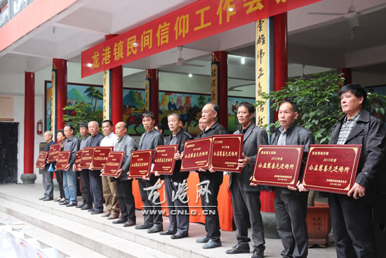 捐资现场,龙港民宗事务所宣读了2013年度龙港民间信仰场所公益慈善先进场所名单,并对沿江黄友龙宫、黄家蓬五显殿、双桂太阴宫等13家先进场所进行表彰。同时也邀请了县民宗局刘传进科长就民间信仰在构建和谐社会传达正能量做了专题报告。