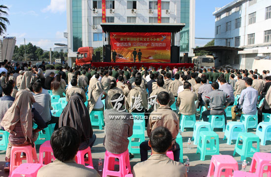 龙港网11月24日讯:"一路真情一路歌",今天上午,浙江省边防总队文艺小分队“情系基层•心手相牵”的慰问演出走进了龙港,在康尔微晶器皿有限公司内搭台献唱,热情演绎。龙港镇委副书记、政法委书记吕存阳,浙江省边防总队政治部副团职干事黄卫军,温州边防支队政治处主任柏秋良等领导到场观看。