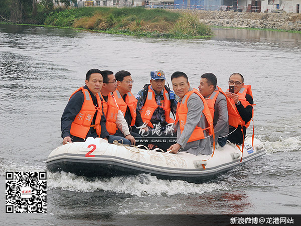 龙港网11月25日讯:(陈记)今天上午,苍南县委常委、龙港镇委书记丁振俊率镇委委员朱文胜,副镇长章定宇及凤江、云岩社区,考绩办,农经局负责人一行乘坐快艇视察凤浦河、鳌江流域治理工程横阳支江标段,督查“五水共治”及横阳支江治理工程房屋拆迁、政策处理、工程进场工作。