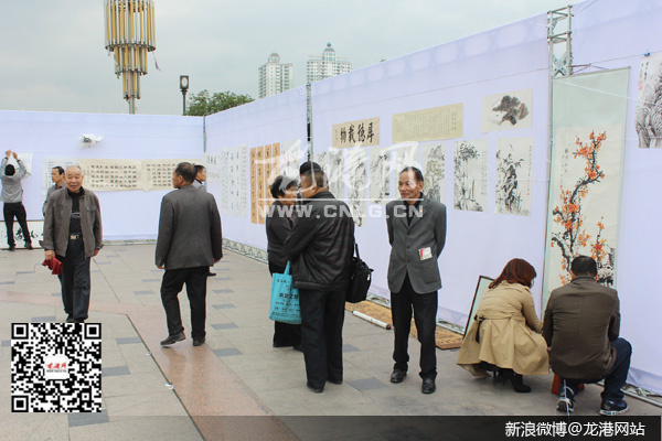 龙港网12月1日讯:今天上午,由龙跃社区主办、林泉书画院协办,共建全国文明镇社区书画展在龙港龙跃广场举行。画展现场吸引了100多名群众来到现场观看。