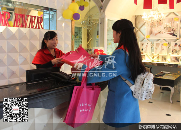 手拉手共建文明城镇,心连心同做龙港文明市民。龙跃路上,巾帼志愿者们身披巾帼肩带,手捧《做文明龙港居民 创全国文明城镇》告知书,热情地给过往的行人和沿街的店家发放宣传单和环保袋,希望他们能够积极参与到龙港创建“全国文明城镇”的队伍当中去,做文明龙港居民。