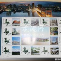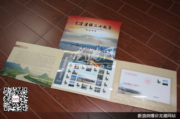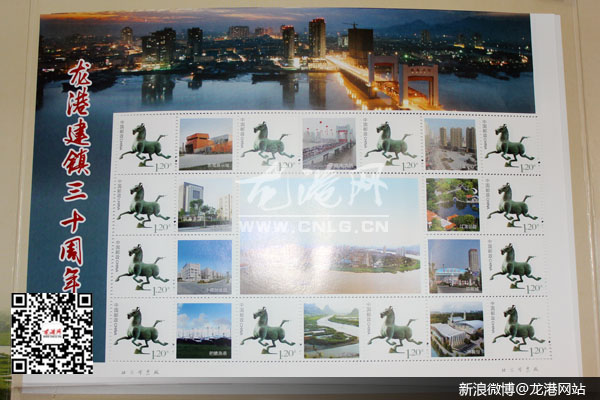 据了解,《龙港建镇三十周年》个性化邮票经中国集邮总公司批准,由县邮政局发行,其主图名称为马踏飞燕,邮资面值为1.2元,副票内容包括中国印刷城、瓯南大桥、小微创业园、舥艚渔港、财富中心、新城展示馆、龙港体育馆、江滨公园、龙港山水、诚大饭店共十枚,全球发行量4000版。