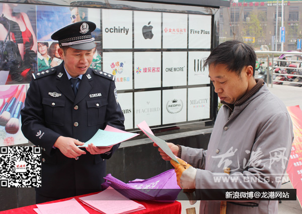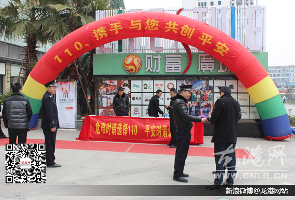 在龙港财富广场,民警在人流量大的场地设立咨询点,向过往群众发放宣传资料,宣传110报警常识、安全防范知识,答疑解惑。并向市民讲解了110报警服务台受理报警求助的范围,如何使用好110,以及发现身边有违法行为出现要在保护好自身安全的前提下勇敢的拨打110,检举揭发不法行为。活动中,结合年内电话诈骗、抢夺、盗窃案件多发警情,民警向市民做了重点讲解。