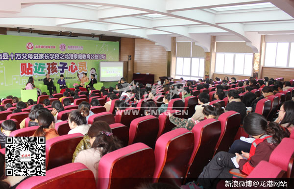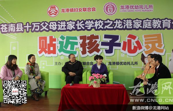 龙港网1月17日讯:为了推进“苍南县十万父母进家长学校”家庭教育宣传实践活动,传播普及科学的现代家庭教育理念和方法,提高家长科学育儿水平,今天上午,由龙港镇妇联主办,优幼托儿所承办的“贴进孩子的心灵,亲子共成长” 家庭教育公益论坛在龙港五小举办。