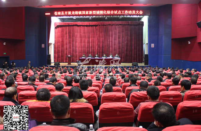 龙港网1月28日讯:今天上午,苍南县开展龙港镇国家新型城镇化综合试点工作动员大会,这标志着龙港镇国家新型城镇化综合试点工作正式启动。县委书记黄寿龙出席会议并做重要讲话。县人大常委会主任苏庆明,县政协主席张传君,县委常委、龙港镇委书记丁振俊,镇长王忠秀在台上就坐。大会由县委常委、常务副县长黄锦耀主持。