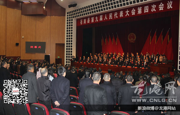 龙港网2月6日讯:今天上午,苍南县第九届人民代表大会第四次会议圆满完成各项议程后,在县人民大会堂胜利闭幕。黄寿龙、苏庆明、黄荣定、张传君、麻胜聪、丁振俊、何宗静、蓝德超、王宗泽、高亚男、陈孝沈、温兴华、高友平、王忠秀等领导在主席台前排就座。
