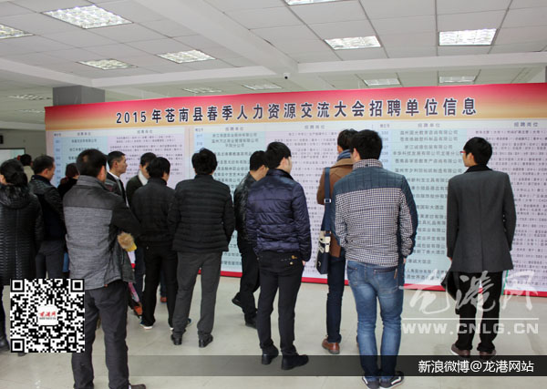 龙港网2月28日讯:为搭建好人才供求服务平台,及时为各企事业单位集聚所需各类人才,今天,2015年苍南县春季人力资源交流会在龙港东新街的县职业介绍指导服务中心隆重开幕。