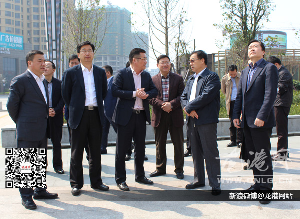随后,宫蒲光一行来到龙港商业中心。该项目按照“财富中心+商住街坊+景观轴线”的布局设计,完成投资30亿元。目前财富中心已建成使用,景观轴线内的中心广场已建成面积1.7万平方米;商住街坊已陆续建成25幢20层以上的高层建筑。这里已成为苍南首家集购物、办公、餐饮、娱乐、金融功能于一体,开展全方位服务的高档商务区。