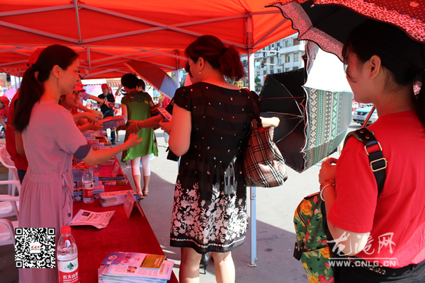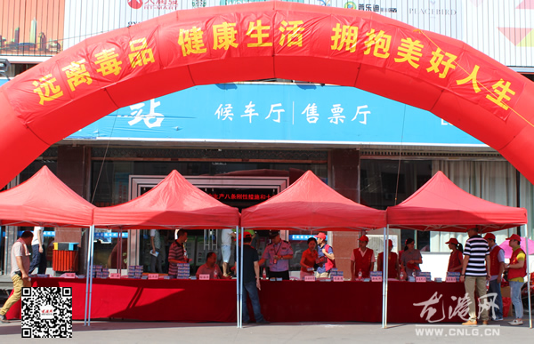龙港网6月26日讯:为切实加强龙港镇禁毒知识的宣传教育,普及毒品的高危害性,提高市民抵制毒品的能力,营造全社会禁毒的浓厚氛围,龙港镇在车站前广场开展了“6.26”国际禁毒日宣传活动。镇委副书记吕存阳参加活动,并亲自给过往市民发放禁毒宣传资料。