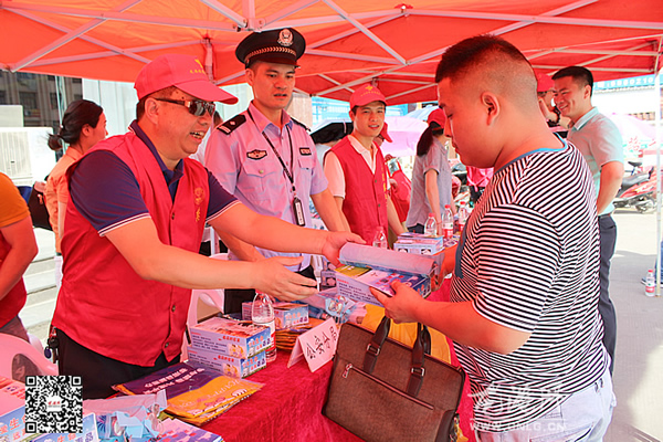 活动现场,来自公安分局、司法局、禁毒办、团委、妇联、新居民局等等部门干部纷纷当起了禁毒宣传大使,悬挂禁毒宣传横幅,张贴禁毒宣传标语,摆放禁毒知识流动课堂展板,向群众介绍毒品对人类身体、家庭的危害,及其所引发的一系列社会问题、矛盾和不稳定因素,为群众答疑解惑,进而加深群众对毒品的了解,引导群众引以为戒,坚决对毒品说“不”,自觉加入到打击毒品犯罪的活动中来。整个活动共发放《中华人民共和国禁毒法》、禁毒防艾知识手册为重点等相关法律资料共计1000余份,取得了良好的宣传效果。