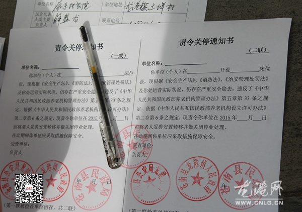 据了解,龙港镇现有43家养老机构,民办养老院近15家,由于受利益驱使,这些民办养老机构普遍存在工作人员消防安全意识不强、环境卫生差、房屋装修耐火等级低、应急管理制度不健全、管理不到位等问题。在前期排查过程中,对存在消防安全隐患的这些民办养老机构发放了整改通知书,限期整改到位。