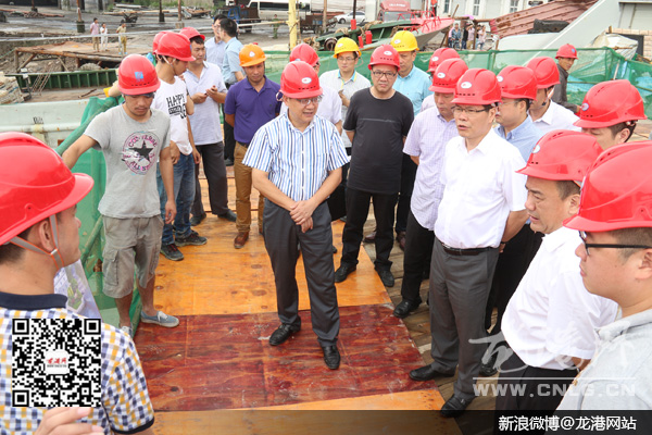 徐立毅一行还来到龙港镇舥艚水闸工程建设工地,深入一线检查防洪排涝设施,对涉海作业人员转移、在建工程加固、渔船归港等方面情况进行详细了解,并认真听取了县镇有关领导对抗台防汛工作的汇报。