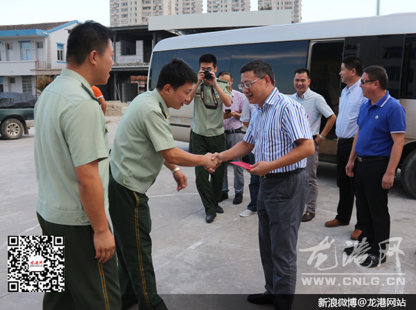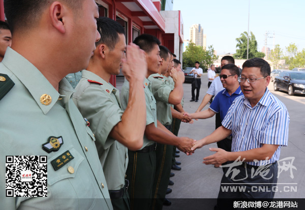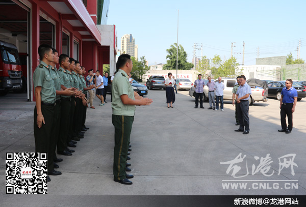 丁振俊一行来到龙港消防队时,与消防官兵们一一握手,祝福他们节日快乐,对他们维护社会稳定、保障人民群众生命财产安全给予了高度赞扬,并为全体官兵送上了真切的祝福和慰问金。希望消防武警官兵要再接再厉,切实提高消防技能,及时、有效地消除各类消防安全隐患,更好地确保龙港人民群众生命财产安全。