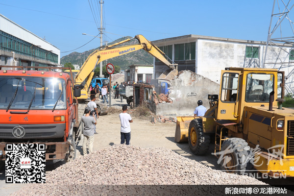 龙港网8月25日讯:今天上午,龙港镇组织两违、国土、住建、电力社区等部门对沿江路、天水路违章建筑进行强制拆除。