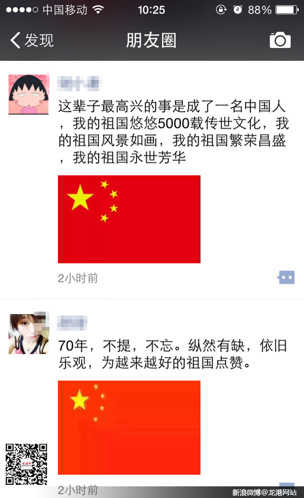龙港网9月3日简讯:今天上午,举世瞩目的中国人民抗日战争暨世界反法西斯战争胜利70周年大阅兵正式拉开了帷幕。不少朋友们守候在电视或电脑机前兴奋的观看视频直播。而与此同时,手机里的微信朋友圈里也是出现了“阅兵文字直播”的现象,有关阅兵信息、天安门夜景、国旗接力图片等“完爆”朋友圈。