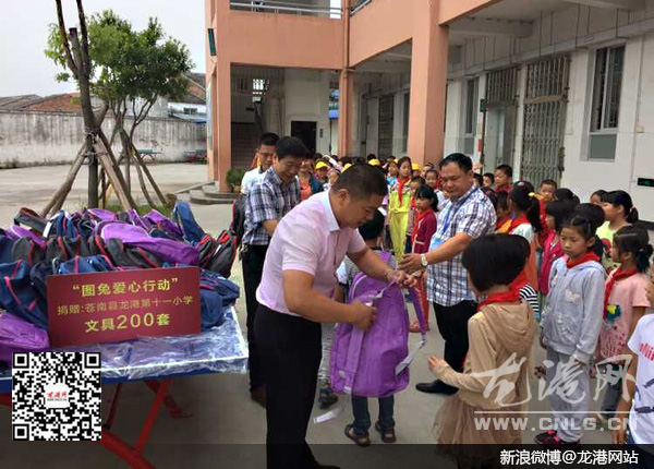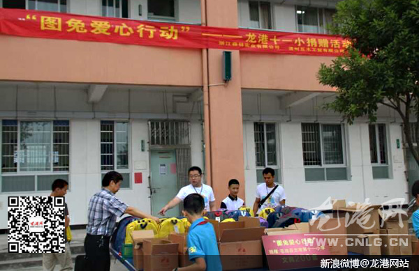 龙港网9月16讯:昨天,由浙江森林实业有限公司、温州五木工贸有限公司及省慈善总会联合举办的“图兔爱心行动”发放仪式在龙港镇第十一小学举行,为该校200名贫困学生每人赠送一套环保爱心文具。