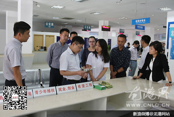 在龙港行政审批中心龙港青少年综合服务平台,调研组参观了“阳光天使 成才计划”、“关爱明天 法制护航”等青少年群体服务项目实施情况。在与工作人员进行的亲切交谈中,团中央权益部副部长王锋对龙港青少年综合服务平台多层次帮教青少年发展所进行的工作表示肯定,并希望龙港镇积极探索各种行之有效的路子,让青少年更加健康茁壮成长。