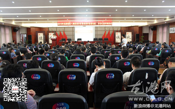龙港网10月22日讯:为了巩固提升龙港镇创建全国文明镇工作,大力弘扬社会主义核心价值观,今天上午,2015年龙港镇第八期道德讲堂暨道德讲堂进社区、文化礼堂活动在龙浦社区开班授课。龙港镇委委员朱文胜及各社区宣传委员、文明单位分管领导和联系人等200多名到场听课。