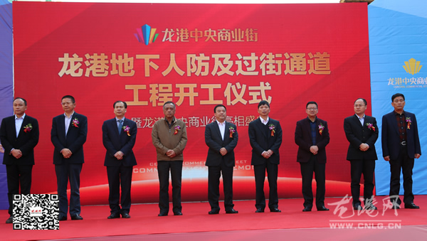 龙港网11月27日讯:今天上午,2013年世界温州人大会签约项目、2015年温商回归重点建设项目——龙港地下人防及过街通道工程开工仪式暨中央商业街亮相盛典成功举行。县长黄荣定,市人防办主任魏学勋,县政协主席张传君,县委常委、镇委书记丁振俊,县人大常委会副主任王忠秀,副县长陈三强,镇人大主席上官光强,镇长陈为来等出席开工仪式。