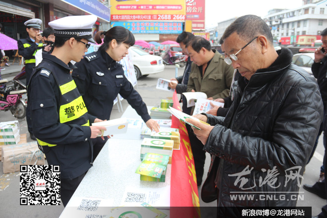 龙港网12月2日讯:今天是第四个“全国交通安全日”。上午,龙港交警队在财富广场、龙港车站等地同时开展宣传活动。龙港网民监督团志愿者也上街开展交通劝导,教育劝导广大市民文明安全出行。