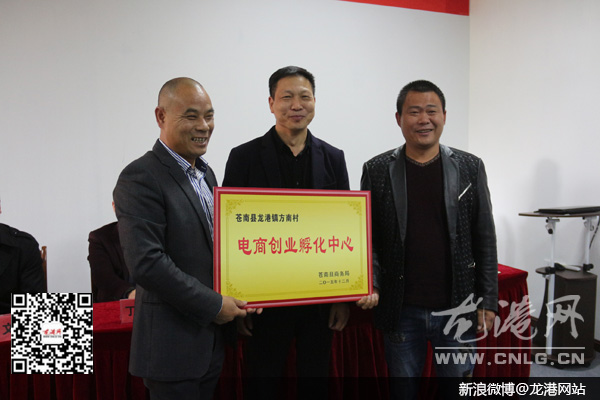 龙港网12月8日讯:今天上午,龙港镇首个村级电商创业孵化中心在白沙社区方南村落成,并同期举行首届电商创业班。县委常委、镇委书记丁振俊,县商务局局长谢尚建,镇委委员朱文胜等领导出席开班仪式,并为电商孵化中心落成揭牌。