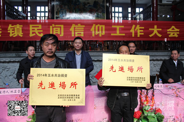 大会首先宣读了2014年度龙港民间信仰场所公益慈善先进场所名单,并对河底高、鲸头、杨府殿等37处场所进行了表彰。据了解,过去一年,龙港民间信仰联络组及时宣传党的民间信仰政策和法律法规,积极参与新农村建设,大力支持修桥补路、扶贫济困等公益慈善活动;并成立民间信仰场所慈善基金,组织开展困难户慰问活动,弘扬了社会正能量。在上午公益慈善捐资活动中,各民间信仰场所还纷纷慷慨解囊,为龙港“五水共治”工作筹得善款10余万元。