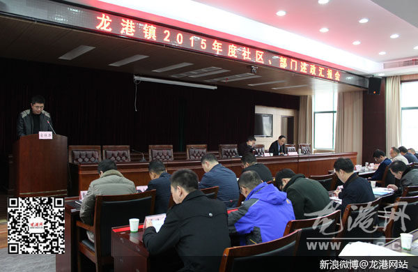 龙港网1月14日讯:昨天,龙港镇召开2015年度社区、部门述政汇报会,现场展示亮点,分析不足,明确任务。县委常委、龙港镇委书记丁振俊及镇三套班子领导,各社区书记,部门负责人等参加会议。