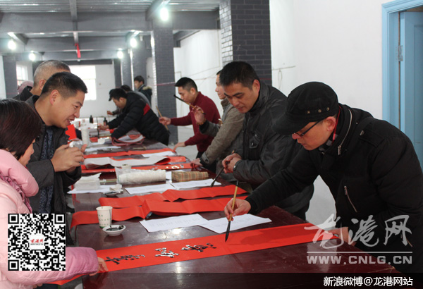龙港网1月23日讯:今天上午,龙港镇新渡村龙港孔庙里人头攒动、热闹非凡,由镇文联牵头组织的“龙港书画家下乡写送春联”活动正在这里开展,10多名书法家为村民写春联,把祝福送给广大村民,受到当地群众的热烈欢迎。