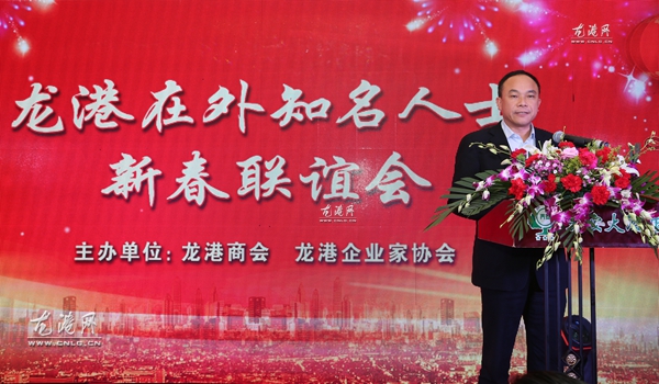 龙港镇长陈为来代表全镇50万人民向在外知名人士、企业家拜年,感谢大家长期以来对龙港发展的深情关注和大力支持。他说,2015年,龙港以国家新型城镇化综合试点为统领,改革试点圆满推进,综合经济稳步发展,城乡建设不断提速,生态环境明显改善,社会事业健康发展,实现了“十二五”圆满收官。2016年,龙港将围绕“建设现代化中国第一农民城——龙港市”目标,紧扣经济、社会、城镇、政府四大转型主题,以改革创新为主线,以提高发展质量效益和人民生活品质为中心,全面推进“改革提速、产业提升、城市提质、生态提优、民生提效”五大重点工作,干出“十三五”开局之年的奋进态势。