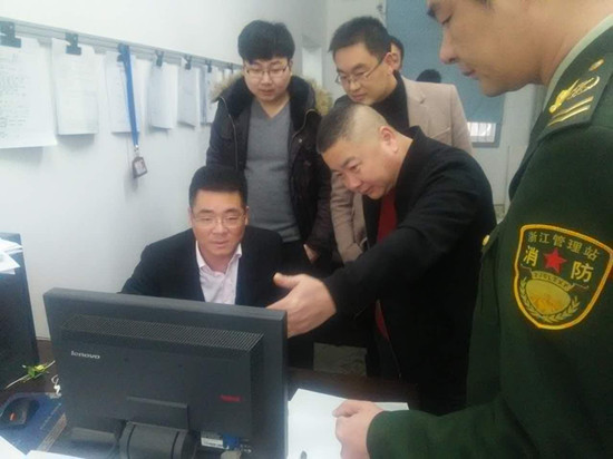 镇委委员朱文胜领导带领镇消防站郑绍飞站长及消防、安监、兄弟社区同志对舥艚社区“百日攻坚”行动进行抽查验收