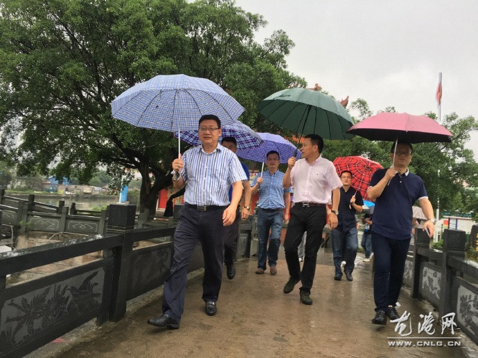 龙港政务网6月13日讯:今天上午,苍南县委常委、龙港镇委书记丁振俊率镇领导黄钦放、林大阔及国土、住建、环保、水利、城建、城管、治水、商贸、两违整治、生态等部门负责人和城南、龙江、白沙、海城等社区书记主任一行巡查通港路、迎港路白沙桥头违章点,又沿龙江社区瓦窑头步行4公里至白沙社区黄中村。