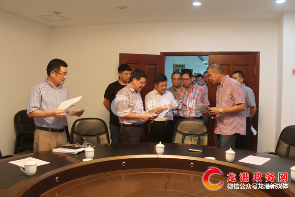 龙港政务网7月20日讯:昨天下午,苍南县人大常委会主任苏庆明一行来龙港镇查看15个大部门实际运行情况。丁振俊、丁云勇、章定宇等领导陪同查看。